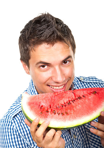 Semangka sangat baik untuk membuat sperma tangguh saat berenang. Menurut Ayoob, buah tersebut kaya akan potasium, yang bisa mencegah tekanan darah tinggi. Untuk kesehatan secara umum, semangka adalah salah satu buah yang mengandung likopen (lycopane) yang cukup sebagai anti-oksidan untuk melawan kanker.